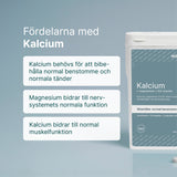 Kalcium är ett viktigt mineral som behövs för att bibehålla normal benstomme och normala tänder. Det bidrar också till normal muskelfunktion och energiomsättning. Ett bra val för dig som vill säkerställa ett tillräckligt kalciumintag i vardagen.