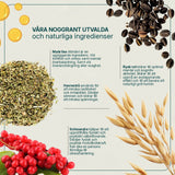 Innehåller växter med adaptogena effekter. Det vill säga växter med en anpassningseffekt som kan hjälpa kroppens förmåga att hantera stress.
